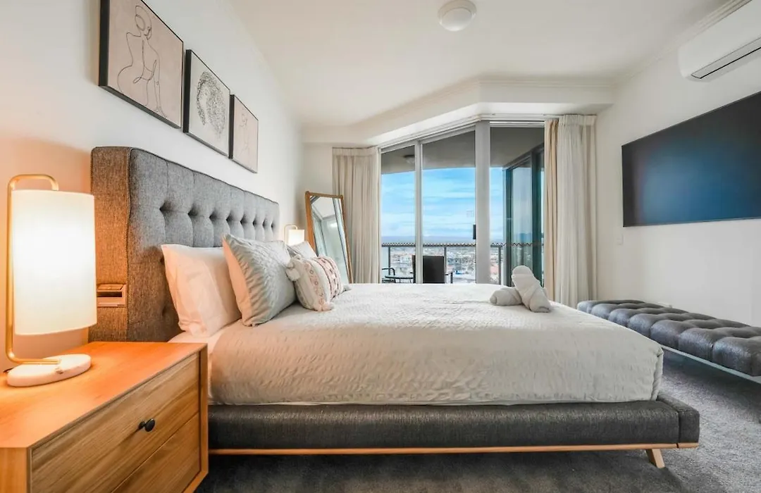 Das Spacious Apt With River Views - Amazing Facilities! ist mit einer voll ausgestatteten Küchenzeile ausgestattet, die einen Herd und einen Geschirrspüler enthält, um Ihren Komfort zu gewährleisten. Die Unterkünfte ist nur wenige Schritte entfernt von der Bushaltestelle Main Beach Pde at Esplanade Surfers Paradise. Gäste können sich auch auf einer Terrasse mit Blick auf die Berge entspannen.
